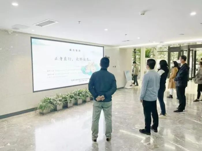 文化的作用如春風(fēng)化雨,潤物無聲,內(nèi)化于心,外踐于行。近日,省建筑設(shè)計(jì)院一樓宣傳大屏播放的“正身直行,眾邪自息”的廉潔寄語,吸引了多名干部職工駐足觀看。