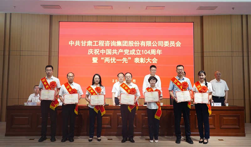 7月1日,甘肅工程咨詢集團召開慶祝中國共產(chǎn)黨成立104周年暨“兩優(yōu)一先”表彰大會,回顧黨的輝煌歷程,弘揚偉大建黨精神,全面展示集團黨建工作成效和黨員干部昂揚風貌,激勵各級黨組織和全體黨員凝心聚力、擔當作為,奮力推動集團公司高質(zhì)量發(fā)展邁向新臺階。集團公司黨委書記、董事長張佩峰出席并講話,總經(jīng)理、董事陳一夫及在家領(lǐng)導(dǎo)班子成員出席,黨委委員、副總經(jīng)理孟康榮宣讀表彰決定,紀委書記、監(jiān)察專員師宗正主持會議。
