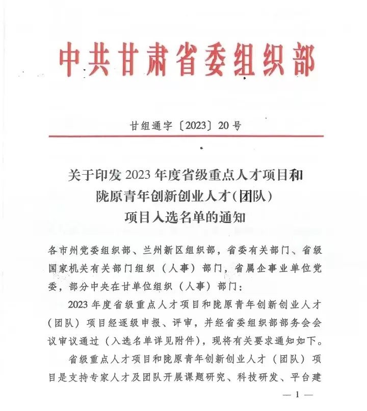 近期,省委組織部印發(fā)了《關于印發(fā)2023年度省級重點人才項目和隴原青年創(chuàng)新創(chuàng)業(yè)人才(團隊)項目入選名單的通知》(甘組通字〔2023〕20號),甘肅工程咨詢集團省建筑設計院張雅慧申報的《鄉(xiāng)村振興與社會生態(tài)韌性視角下西北傳統(tǒng)村落的保護與再生利用研究》入選個人項目名單,獲得6萬元經費資助。