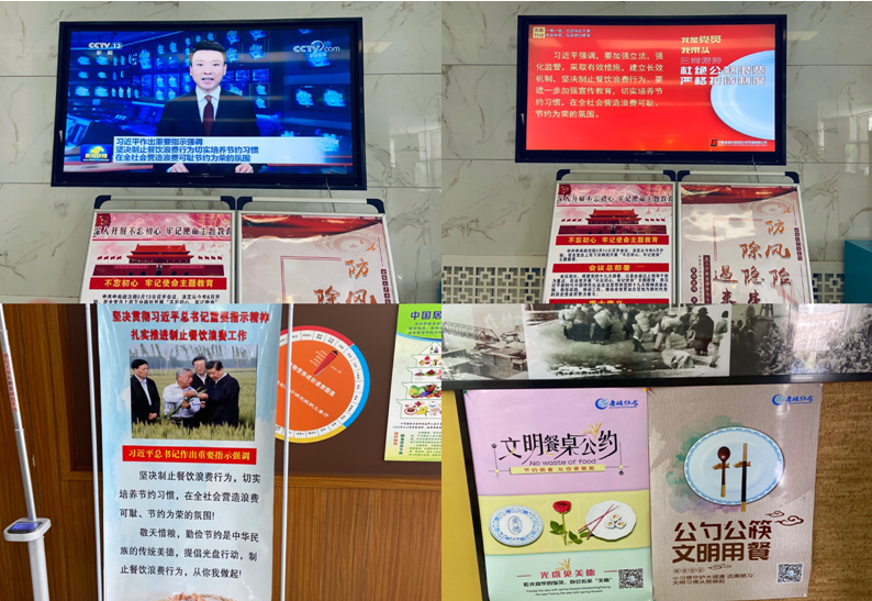 通過在公司一樓大廳的LED屏上滾動播放習(xí)近平總書記提出杜絕餐飲浪費的重要指示、制作播放關(guān)于節(jié)約用餐、文明用餐的PPT、在宣傳欄和食堂醒目位置張貼宣傳圖片和條幅標(biāo)語等,遏制“舌尖上的浪費”,消除“剩宴”,最大限度減少餐飲浪費。廣大黨員干部還簽訂《杜絕餐飲浪費承諾書》,充分發(fā)揮黨員表率作用,以黨員帶動群眾,在公司范圍內(nèi)營造浪費可恥、節(jié)約為榮的良好氛圍。